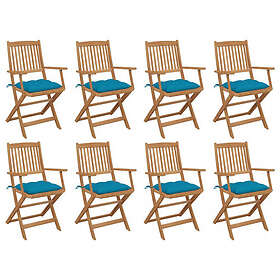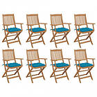 vidaXL Foldbare havestole med hynder 8 stk massivt akacietræ 3075104
