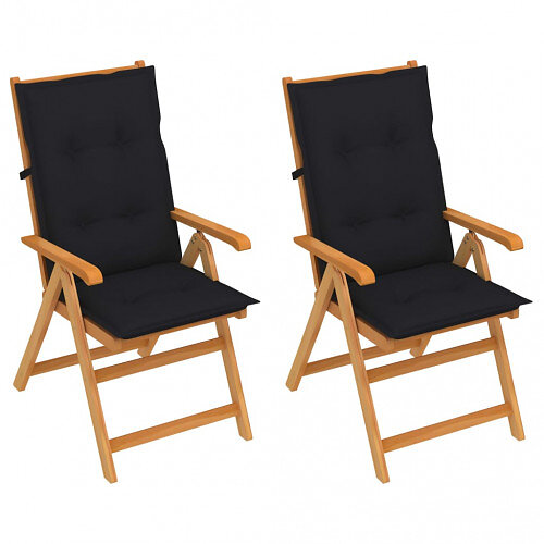 vidaXL Trädgårdsstolar 2 st med svarta dynor massiv teak 3062398