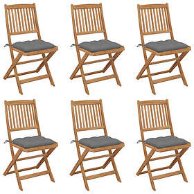 vidaXL Hopfällbara trädgårdsstolar med dynor 6 st massivt akaciaträ 3065504