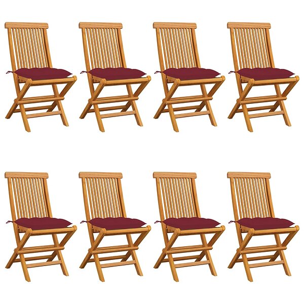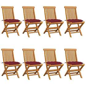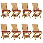 vidaXL Trädgårdsstolar med vinröda dynor 8 st massiv teak 3072941