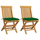 vidaXL Trädgårdsstolar med gröna dynor 2 st massiv teak 3062480