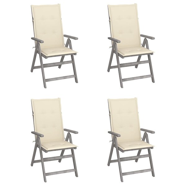 vidaXL Fällbara trädgårdsstolar med dynor 4 st massivt akaciaträ 3065379