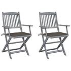 vidaXL Hopfällbara trädgårdsstolar med dynor 2 st massivt akaciaträ 3064490