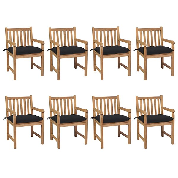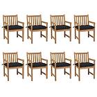 vidaXL Trädgårdsstolar 8 st med svarta dynor massiv teak 3073080
