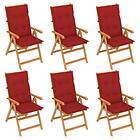 vidaXL Trädgårdsstolar 6 st med röda dynor massiv teak 3065581