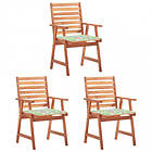 vidaXL Trädgårdsstolar 3 st med dynor massivt akaciaträ 3064359