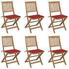 vidaXL Hopfällbara trädgårdsstolar med dynor 6 st massivt akaciaträ 3075000
