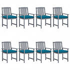 vidaXL Trädgårdsstolar med dynor 8 st massivt akaciaträ grå 3078253