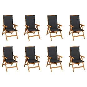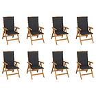 vidaXL Justerbara trädgårdsstolar med dyna 8 st massiv teak 3072690