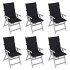 vidaXL Justerbara trädgårdsstolar med dynor 6 st massivt akaciaträ 3065339