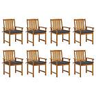 vidaXL Trädgårdsstolar med dynor 8 st massivt akaciaträ 3078193