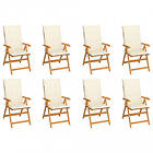 vidaXL Justerbara trädgårdsstolar med dyna 8 st massiv teak 3072543