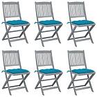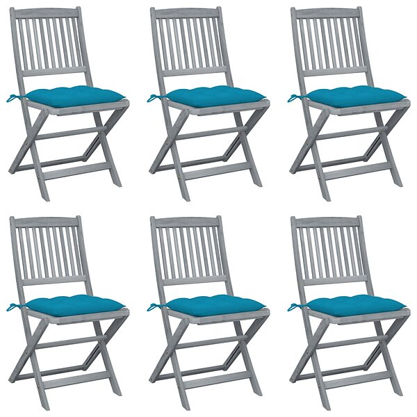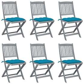 vidaXL Hopfällbara trädgårdsstolar med dynor 6 st massivt akaciaträ 3065453