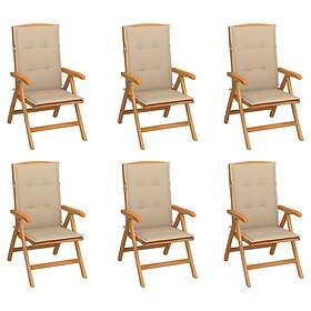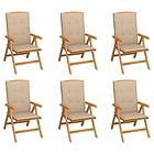 vidaXL Justerbara trädgårdsstolar med dyna 6 st massiv teak 3072663
