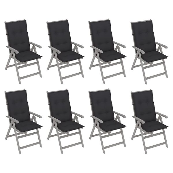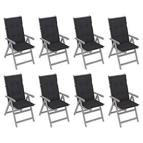 vidaXL Justerbara trädgårdsstolar med dynor 8 st grå akaciaträ 3075156