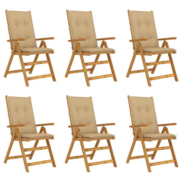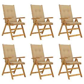 vidaXL Hopfällbara trädgårdsstolar med dynor 6 st massivt akaciaträ 3064137