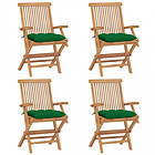 vidaXL Trädgårdsstolar med gröna dynor 4 st massiv teak 3065637
