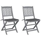vidaXL Hopfällbara trädgårdsstolar med dynor 2 st massivt akaciaträ 3064536