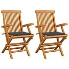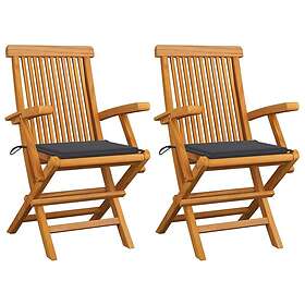 vidaXL Trädgårdsstolar 2 st med antracita dynor massivt teakträ 3062487