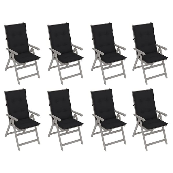 vidaXL Justerbara trädgårdsstolar med dynor 8 st grå akaciaträ 3075163