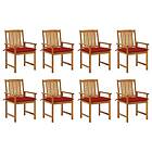 vidaXL Trädgårdsstolar med dynor 8 st massivt akaciaträ 3078199