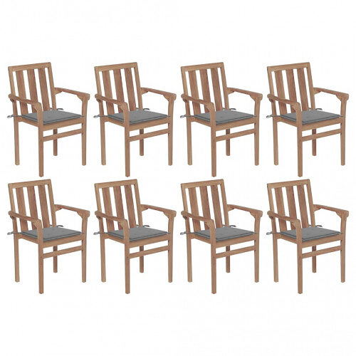 vidaXL Stapelbara trädgårdsstolar med dynor 8 st massiv teak 3073434