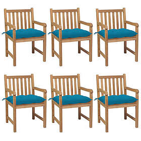 vidaXL Trädgårdsstolar 6 st med ljusblå dynor massiv teak 3073050