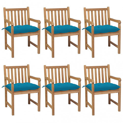 vidaXL havestole 6 stk. med lyseblå hynder massivt teaktræ