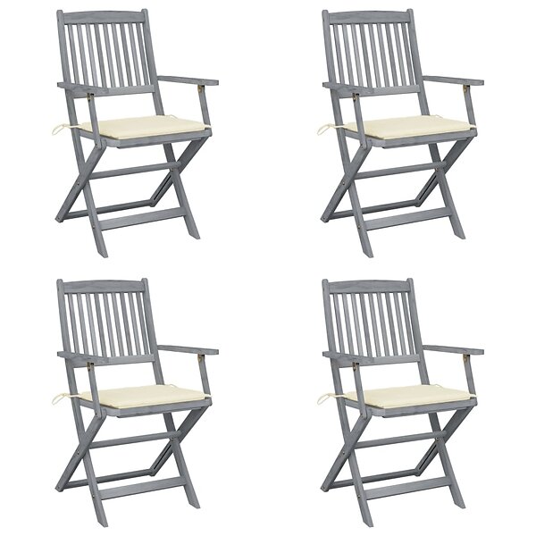 vidaXL Hopfällbara trädgårdsstolar med dynor 4 st massivt akaciaträ 3064511