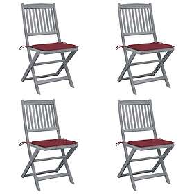 vidaXL Hopfällbara trädgårdsstolar med dynor 4 st massivt akaciaträ 3064572