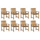 vidaXL Trädgårdsstolar med dynor 8 st massivt akaciaträ 3078167