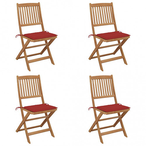 vidaXL Hopfällbara trädgårdsstolar med dynor 4 st massivt akaciaträ 3064677