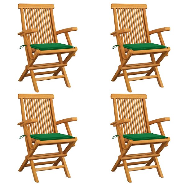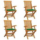 vidaXL Trädgårdsstolar med gröna dynor 4 st massivt teakträ 3065622
