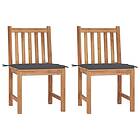 vidaXL Havestole 2 stk massivt teak med hynder 3062916