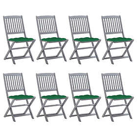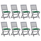 vidaXL Foldbare havestole 8 stk med hynder massivt akacietræ 3078310