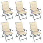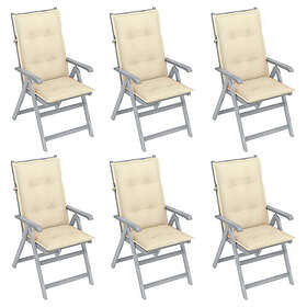 vidaXL Justerbara trädgårdsstolar med dynor 6 st massivt akaciaträ 3065334
