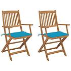 vidaXL Hopfällbara trädgårdsstolar med dynor 2 st massivt akaciaträ 3064594