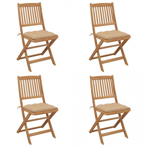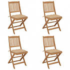 vidaXL Hopfällbara trädgårdsstolar med dynor 4 st massivt akaciaträ 3064689