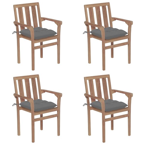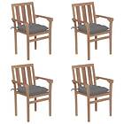 vidaXL Stapelbara trädgårdsstolar med dynor 4 st massiv teak 3073395