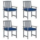 vidaXL Trädgårdsstolar med dynor 4 st grå massivt akaciaträ 3061272