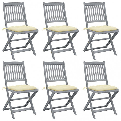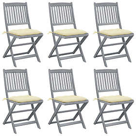 vidaXL Hopfällbara trädgårdsstolar med dynor 6 st massivt akaciaträ 3065451
