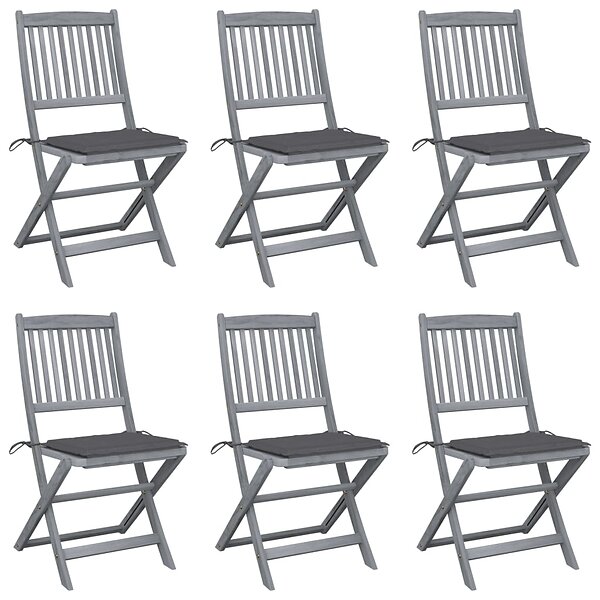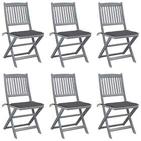vidaXL Hopfällbara trädgårdsstolar med dynor 6 st massivt akaciaträ 3065434