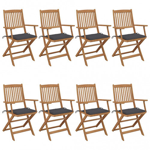 vidaXL Foldbare havestole med hynder 8 stk massivt akacietræ 3074967