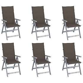 vidaXL Justerbara trädgårdsstolar med dynor 6 st massivt akaciaträ 3065325
