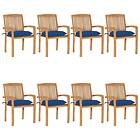 vidaXL Stapelbara trädgårdsstolar med dynor 8 st massiv teak 3073289