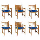 vidaXL Trädgårdsstolar med kungsblåa dynor 6 st massiv teak 3073041
