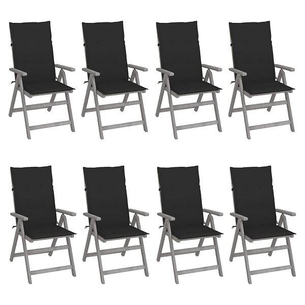 vidaXL Justerbara trädgårdsstolar med dynor 8 st grå akaciaträ 3075148
