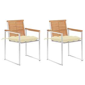 vidaXL 2 stk havestole med hynder massivt teaktræ og stål 3061532