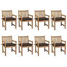 vidaXL Trädgårdsstolar 8 st med taupe dynor massiv teak 3073081