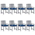 vidaXL Trädgårdsstolar med dynor 8 st massivt akaciaträ grå 3078259